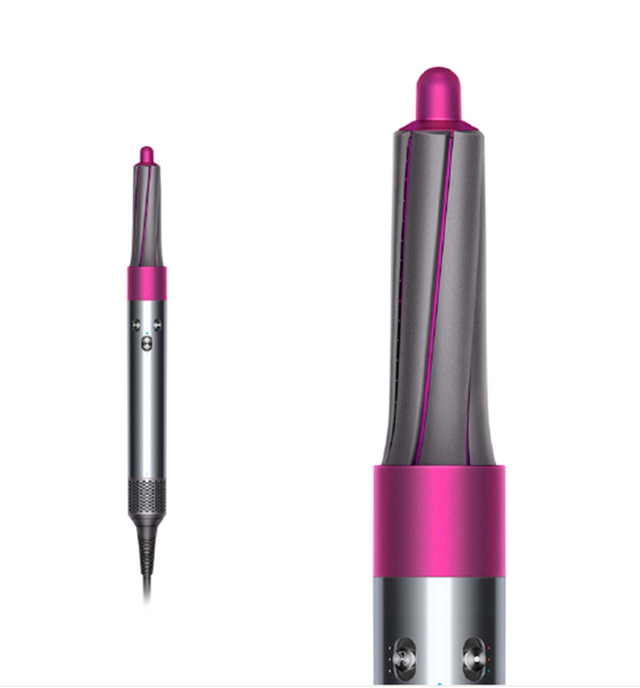 A glamorous finish featuring big, bold curls. Using the 40mm long barrel and Firm smoothing brush.